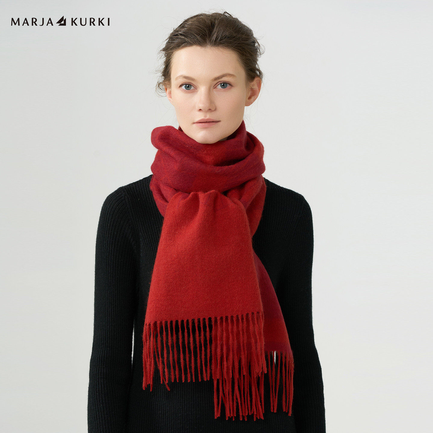 MARJAKURKI玛丽亚古琦双面羊毛羊绒围巾女生冬季红色围巾新年礼物