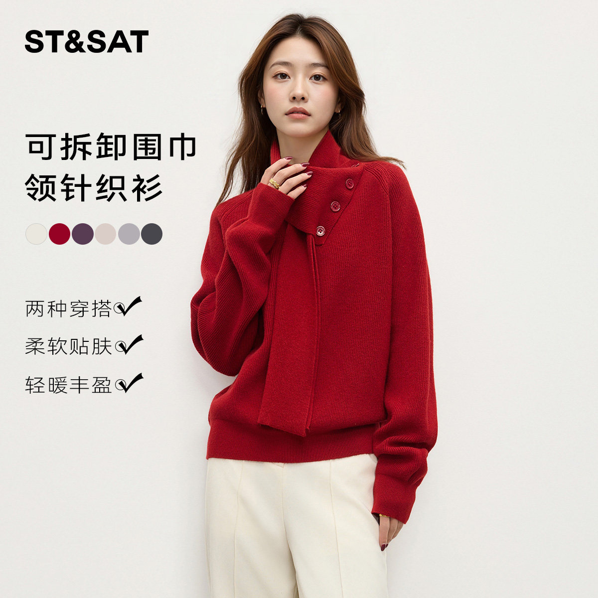 星期六红色百搭高级感围巾领毛衣2025冬季新款慵懒围脖针织衫上衣