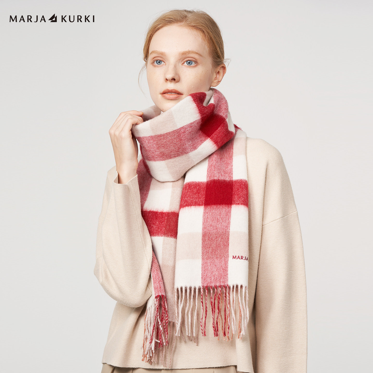 MARJAKURKI玛丽亚古琦红色格子羊毛围巾女冬季大红围巾本命年礼物