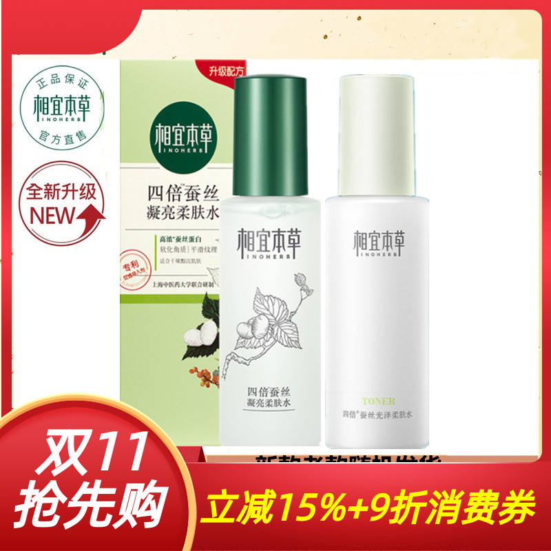 相宜本草爽肤水四倍蚕丝凝亮光泽柔肤水补水保湿正品套装化妆水女