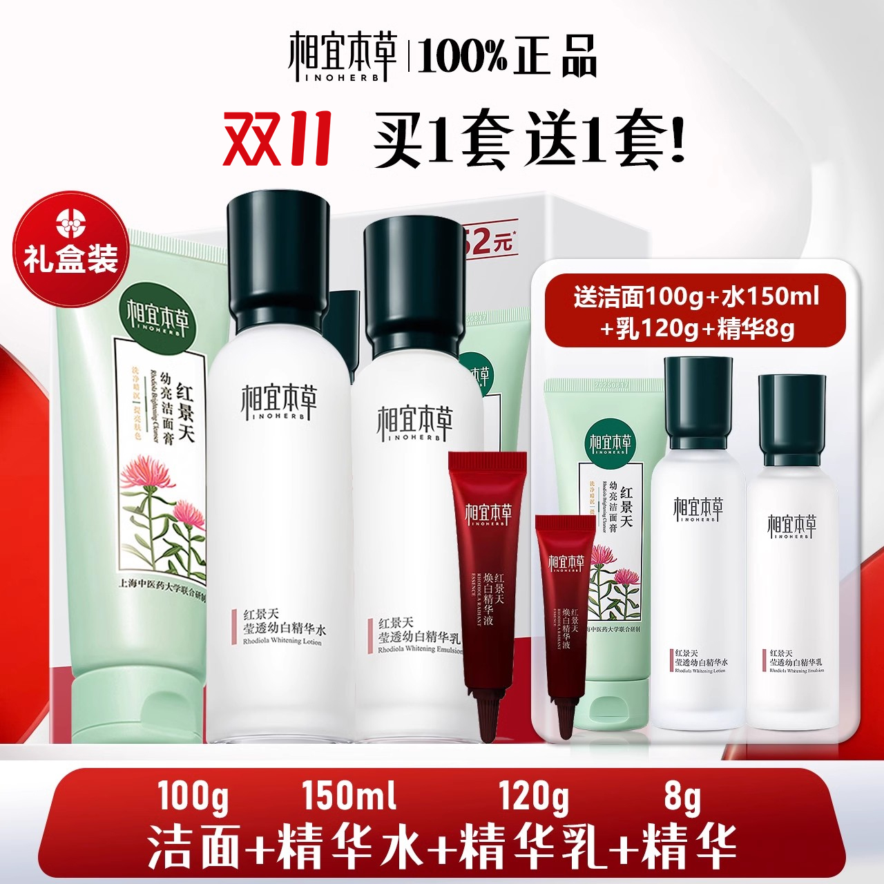 【双11现货】相宜本草红景天水乳护肤套装美白淡斑补水紧致正品
