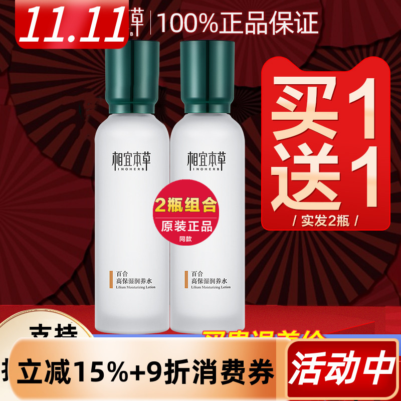 相宜本草官方旗舰店正品百合水乳套装保湿补水修护滋润护肤品学生