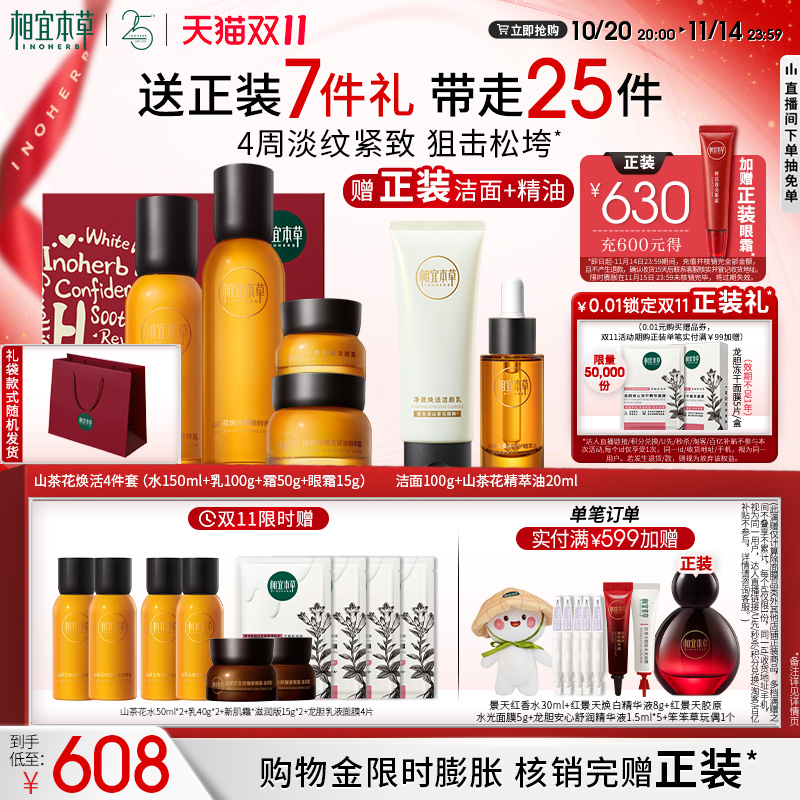 相宜本草山茶花紧致抗皱淡纹套装礼盒补水保湿提亮肤色盒磨损正品