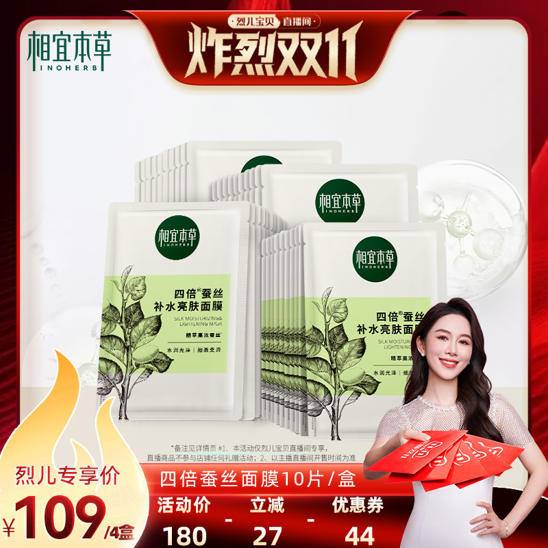 相宜本草四倍蚕丝凝亮水光泽丝蛋白精华面霜官方正品补水保湿套装