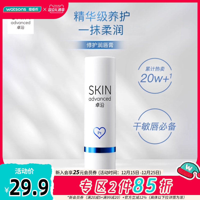 屈臣氏卓沿白金保湿修护润唇膏4g 补水滋养柔润双唇防干裂滋润