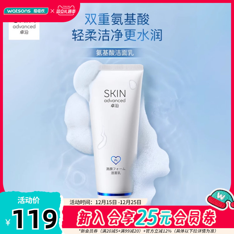 屈臣氏卓沿白金舒润温和保湿净透洁面乳氨基酸洗脸奶100ml补水