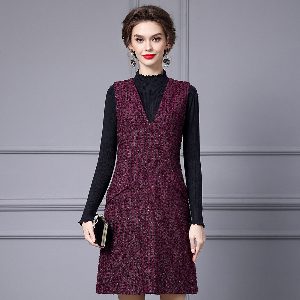 高端气质真两件套装高档长袖毛呢连衣裙初春秋款高贵洋气减龄妈妈