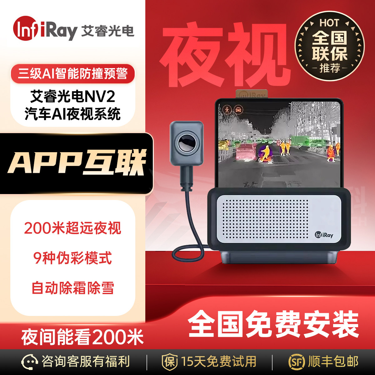 艾睿光电NV2智能车载红外夜视汽车热成像仪防远光夜晚AI辅助驾驶