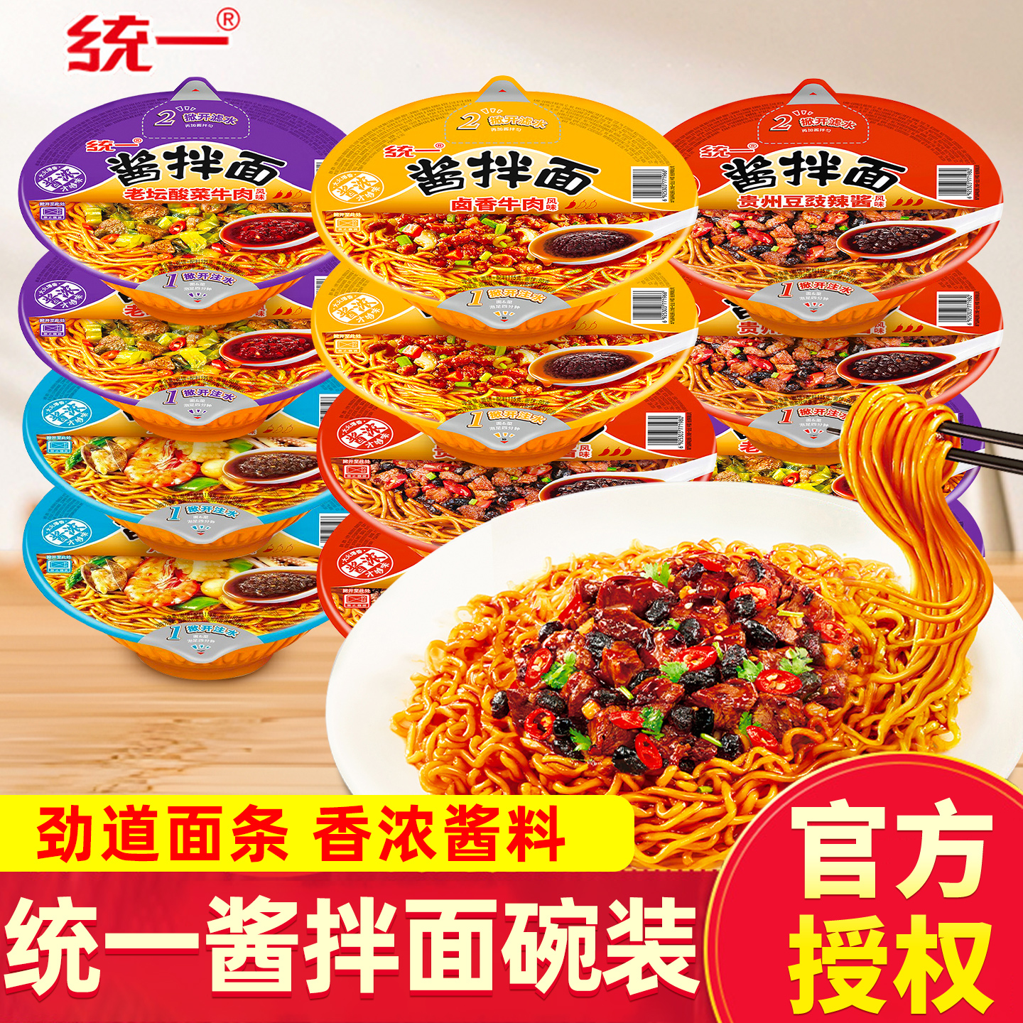 统一方便面12碗整箱装贵州豆豉辣酱酱拌面五香牛肉干拌炸酱面速食