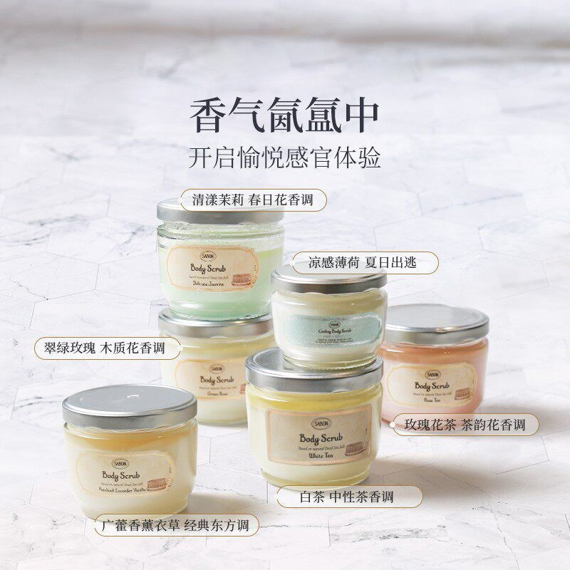 以色列Sabon身体磨砂膏去角质玫瑰茶茉莉绿玫瑰白茶广霍小样试用