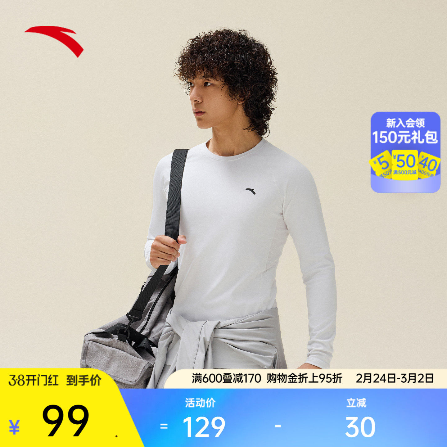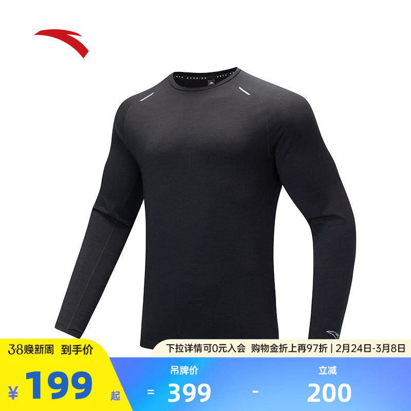 安踏紧身针织长袖t恤男春夏季健身跑步训练运动服上衣152445405