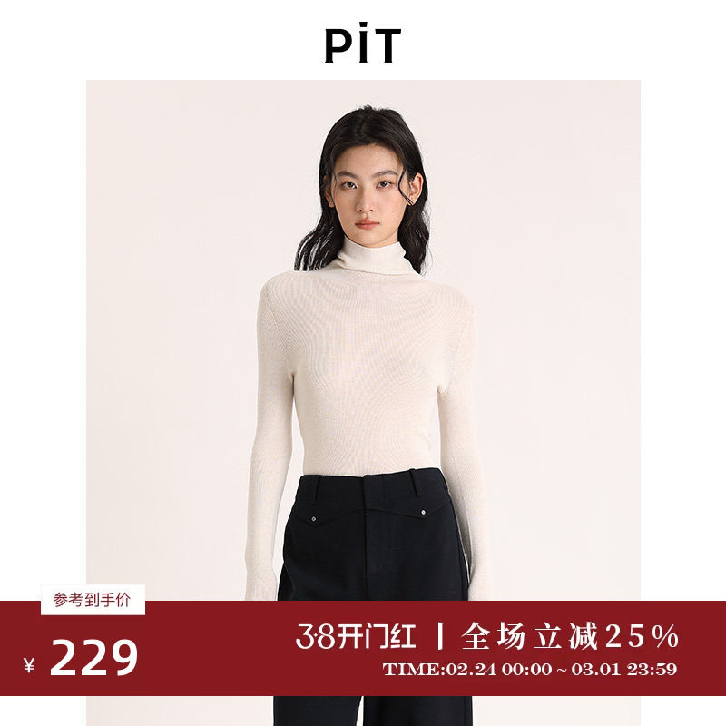 PIT高领紧身长袖修身毛针织衫女2025春季新款百搭显瘦毛衣