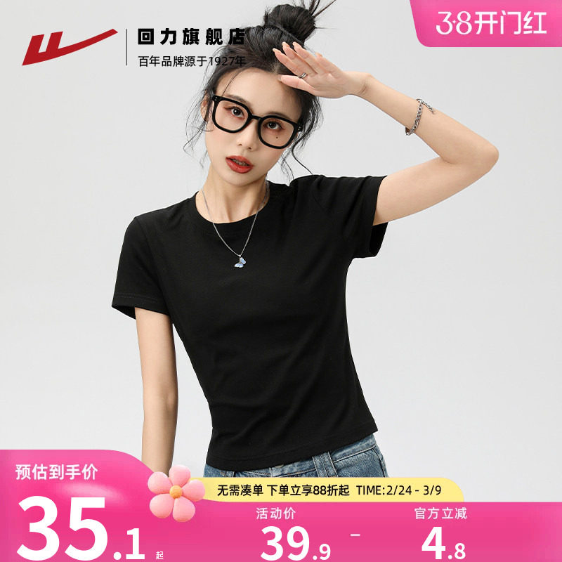 回力正肩短袖t恤女2026新款夏季短款黑色修身纯棉内搭辣妹半袖