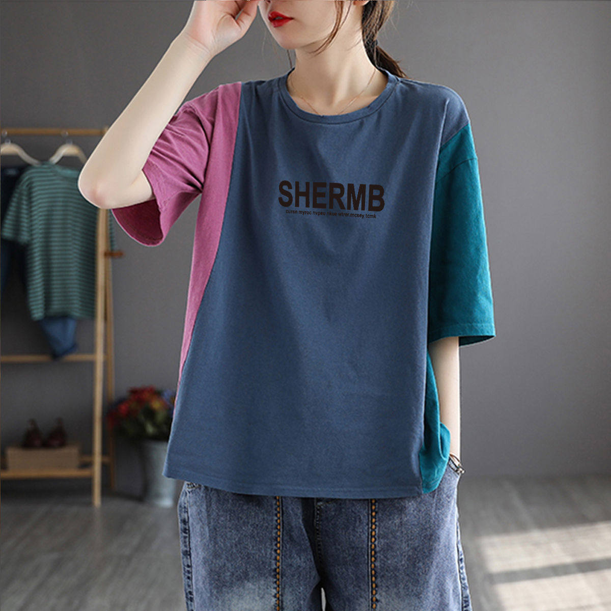 纯棉短袖t恤女2025年新款夏季女装拼色时尚半袖短款女士上衣体恤