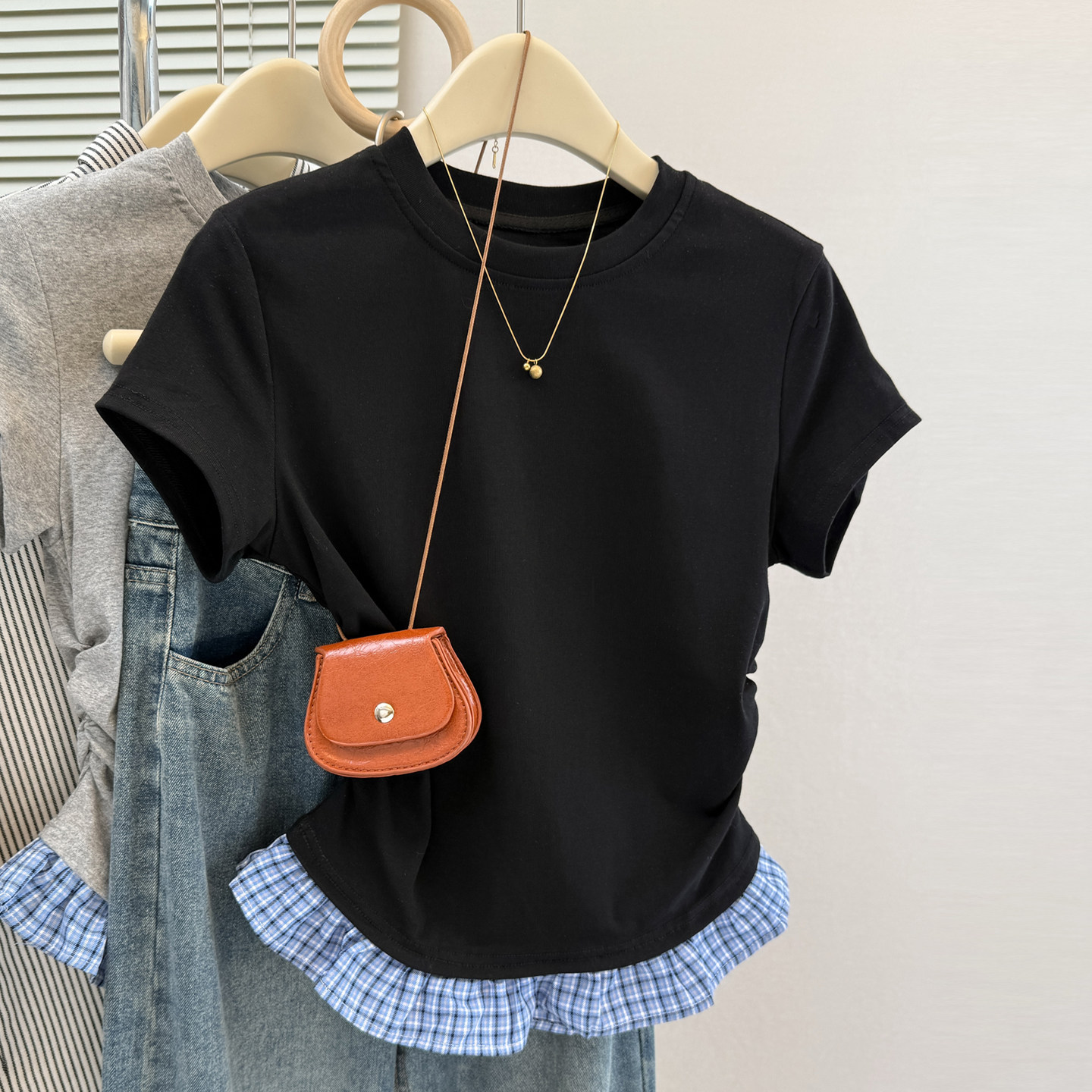 假两件拼接设计感小众短袖T恤女夏装修身韩版短款小个子半袖上衣