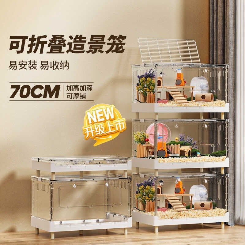 仓鼠笼子70全透明亚克力超大别墅窝金丝熊刺猬饲养箱可折叠大笼子