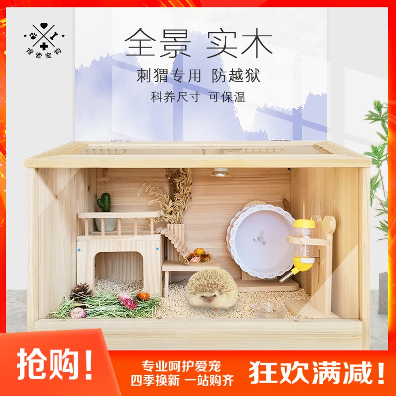 刺猬饲养箱金丝熊豚鼠花枝鼠防越狱仓鼠笼子超大号别墅实木保温箱
