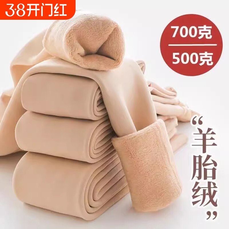 加厚羊羔绒打底裤女冬季保暖连裤袜显瘦不掉裆灰色加绒羊毛裤外穿