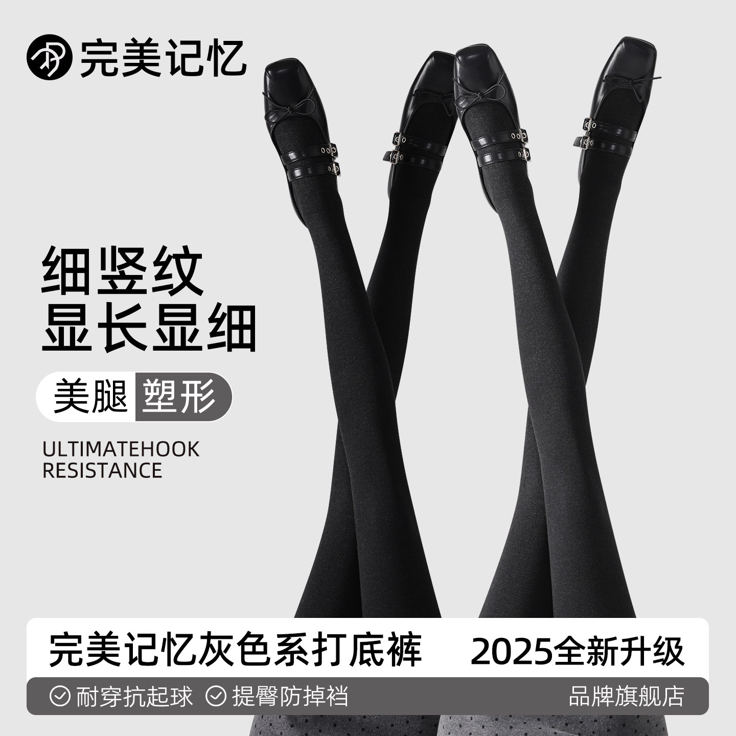 完美记忆灰色打底裤女秋冬外穿黑色竖纹压力显瘦加厚绒保暖连裤袜