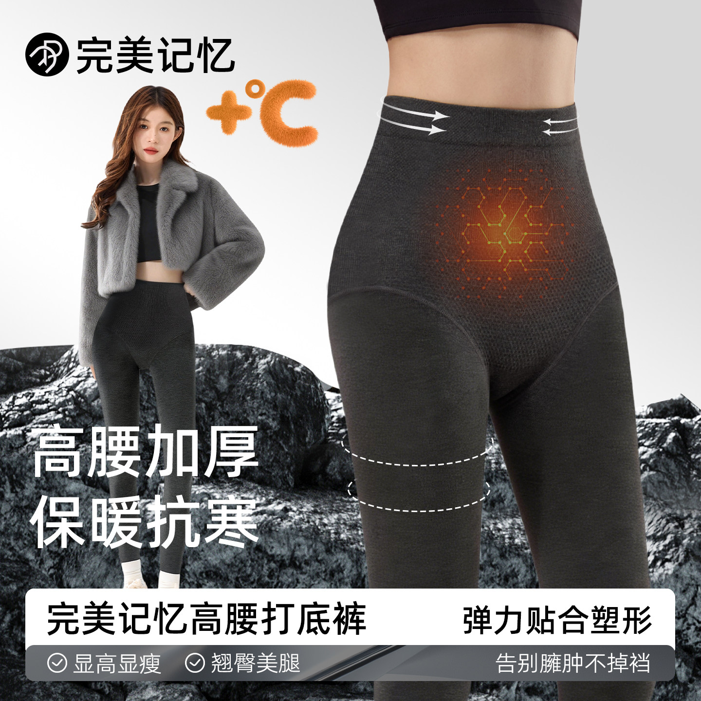 完美记忆灰色打底裤女冬季外穿保暖黑色高腰收腹提臀塑形压力瘦腿