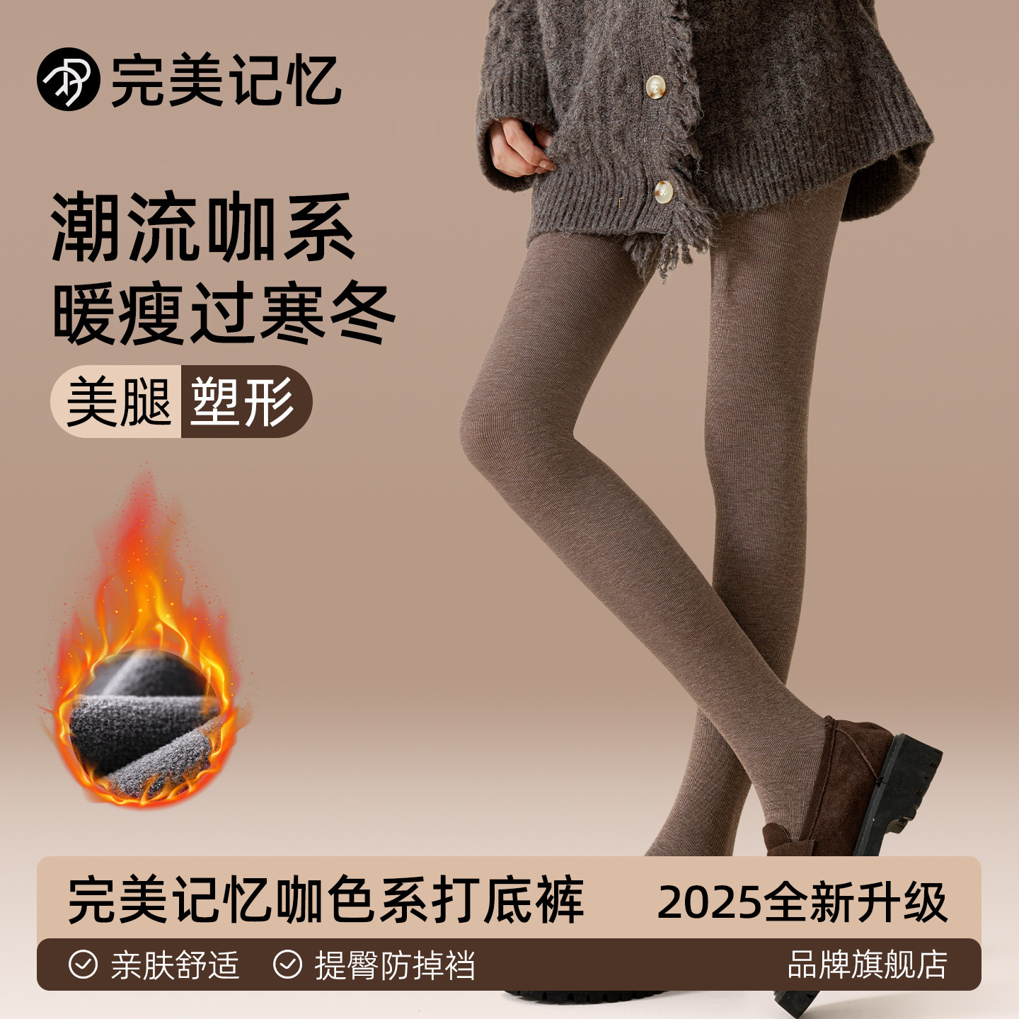 完美记忆咖色打底裤女冬外穿压力瘦腿美拉德棕色加厚绒保暖连裤袜