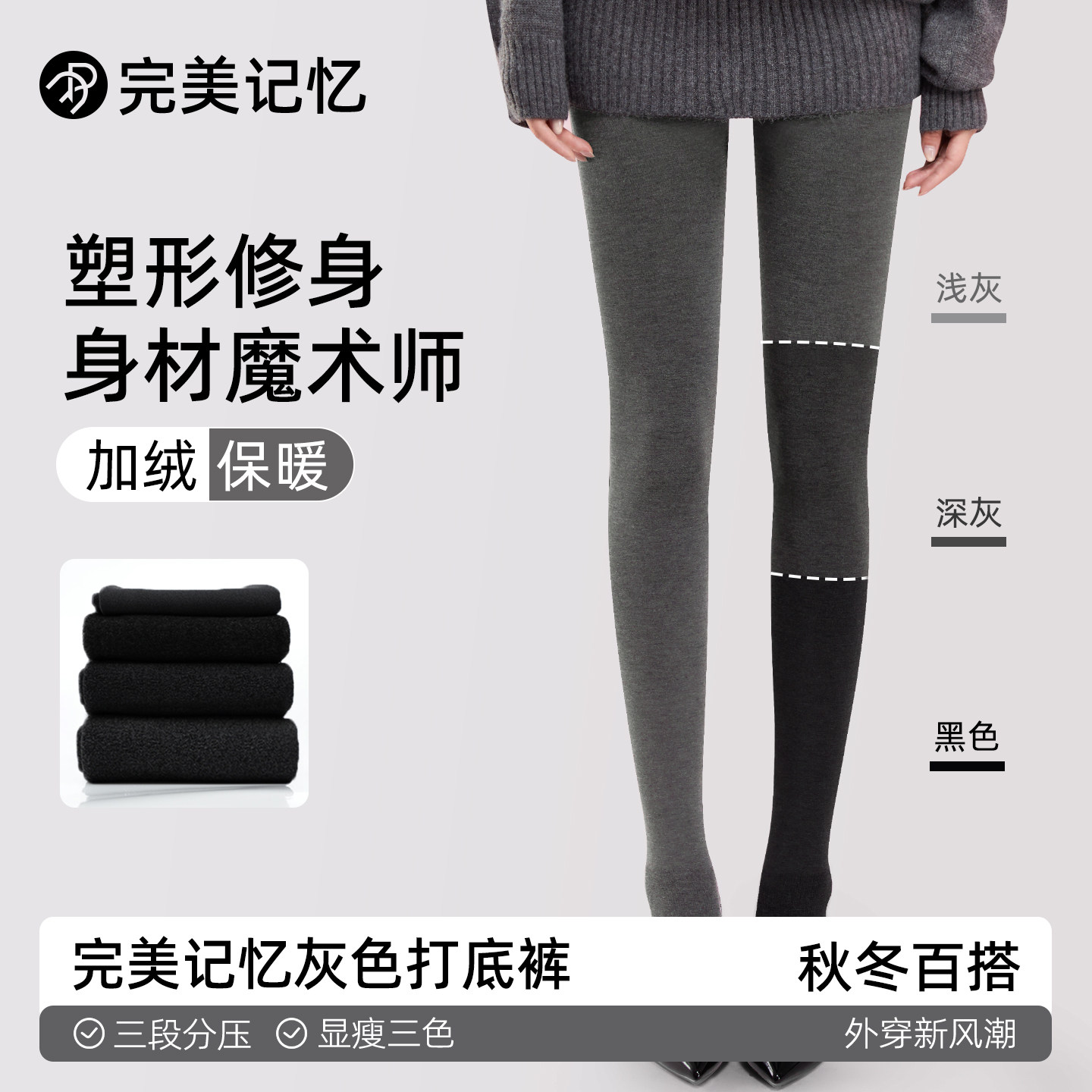 完美记忆灰色打底裤女冬外穿压力塑形显瘦新款加绒加厚保暖连裤袜