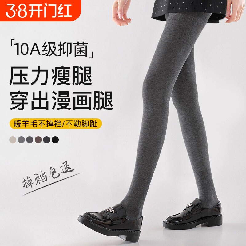 菇娘家澳洲绵羊毛灰色打底裤女冬外穿加厚保暖深灰压力瘦腿连裤袜