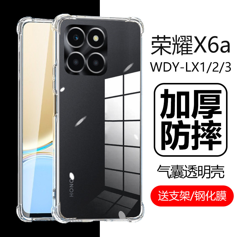 适用荣耀X6a轻薄手机壳Honor X6A后盖保护套WDY-LX1防摔WDY-LX2减震WDY-LX3透光性强圆边水晶壳清晰不易变色