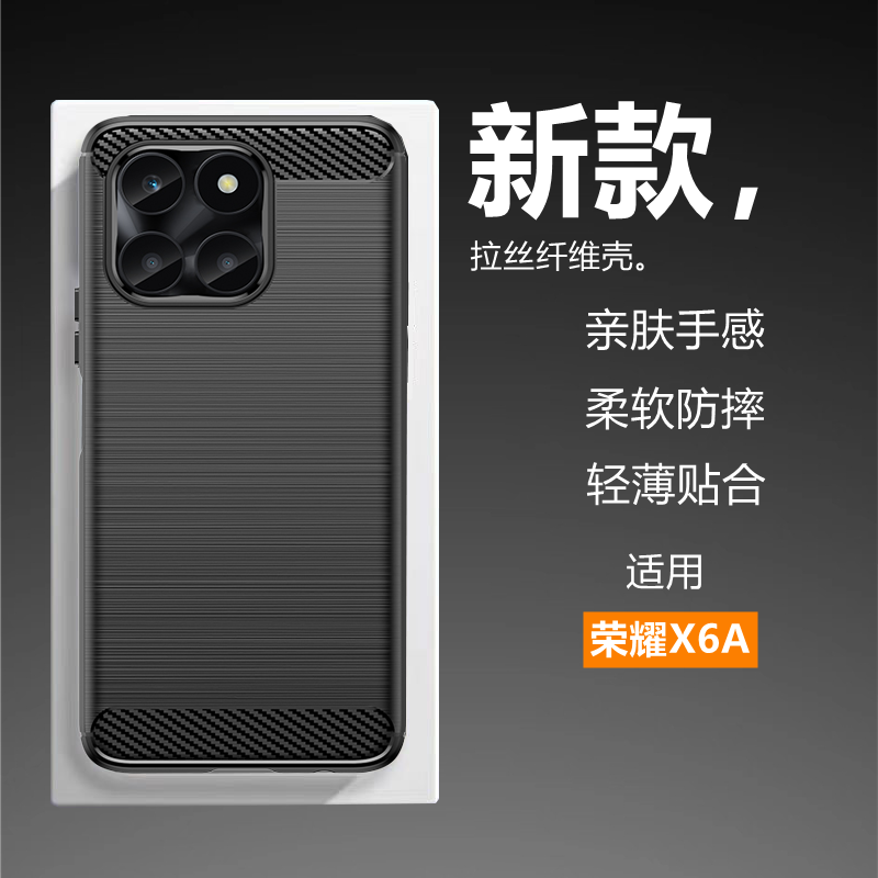 适用于荣耀X6A手机壳新款碳纤维拉丝超薄硅胶软壳防摔防滑保护套全包边