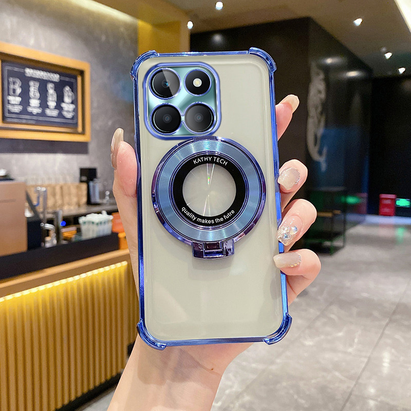 荣耀X6A手机壳新款电镀气囊防摔适用HONORX6B高端奢华创意时尚磁吸支架超薄简约商务男X6C全包透明硅胶保护套