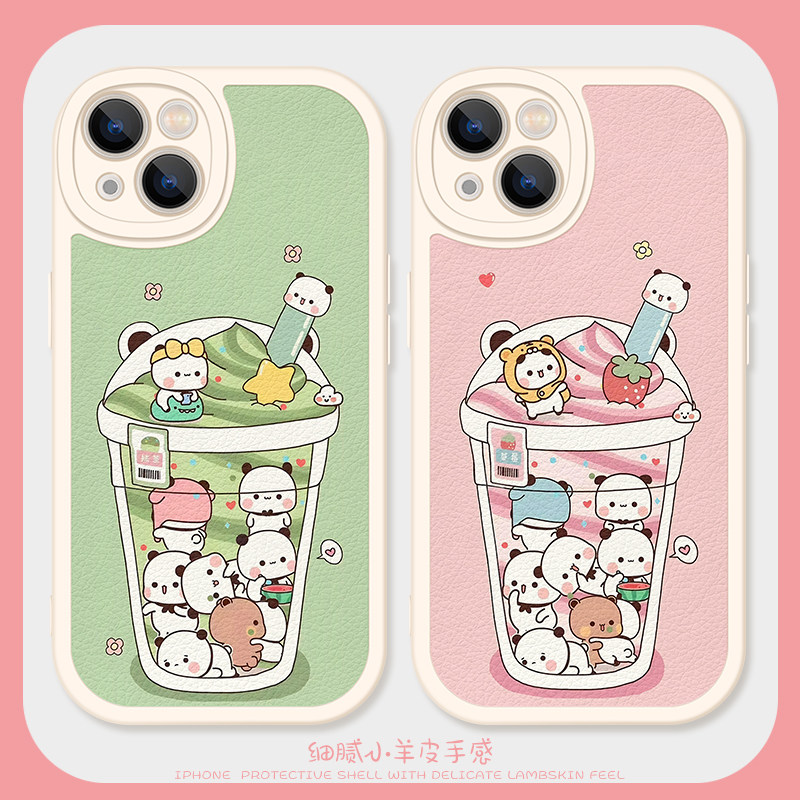 喝奶茶一二布布适用苹果14plus手机壳11promax硅胶iPhone16小羊皮12情侣13卡通15新款OPPOreno7女生vivox100