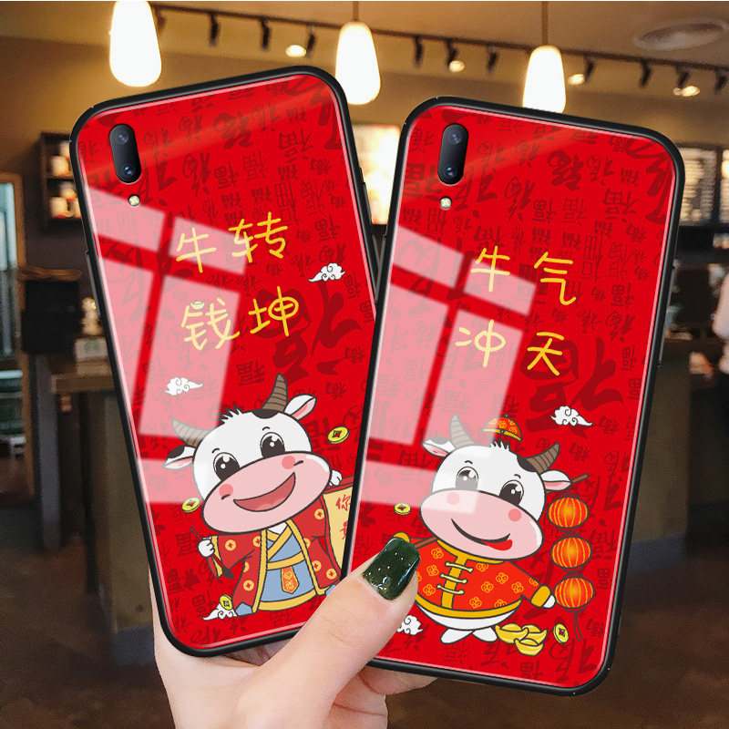 2021牛年vivox7手机壳玻璃x7plus本命年y79/y75/y71硅胶适用y70s红色过年新款y67/y66男女y55保护套Xplay6潮