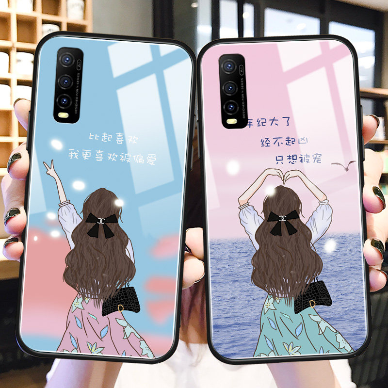 夏天女孩vivoy70s手机壳玻璃vivox7plus简约创意xplay6新款适用y79/y75/y71文字ins风y55硅胶y66保护套y67潮