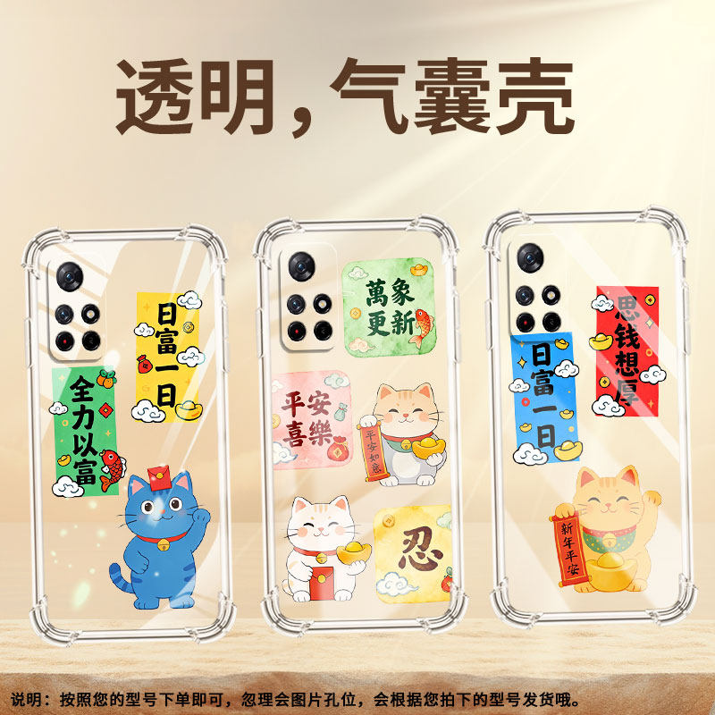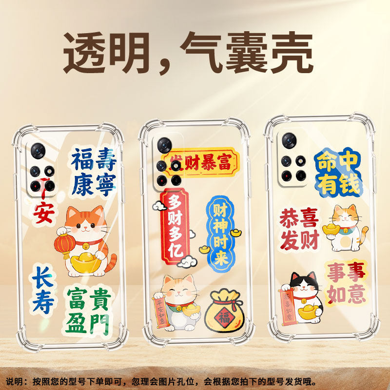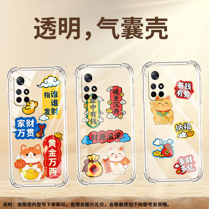 适用小米PocoM3手机壳PocoM7高级感小米PocoM6Plus多财多亿XiaomiPocoM5S气囊壳小米PocoM4Pro男女保护套