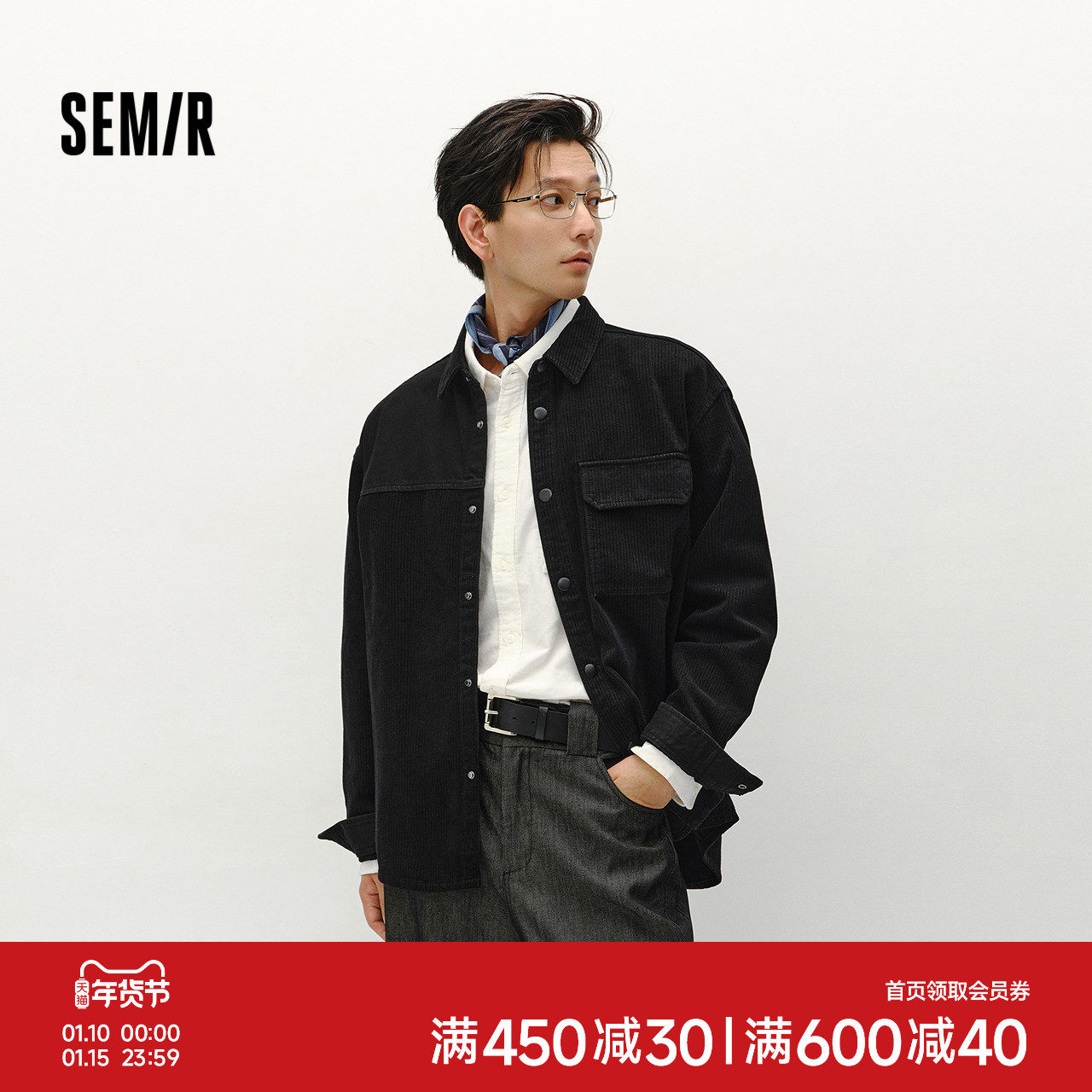 森马长袖衬衫男格纹绒感牛仔外套不规则下摆冬季宽松翻领上衣时尚