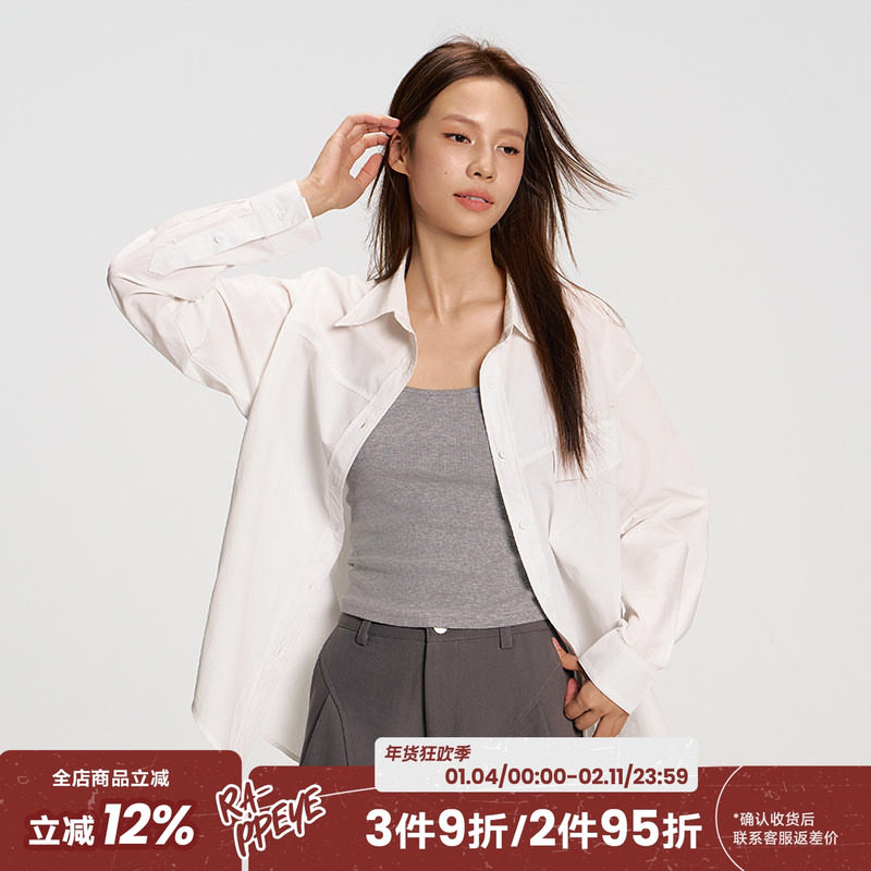 RAPPEYE 简约日系休闲情侣百搭纯色长袖衬衣外套设计感不规则衬衫