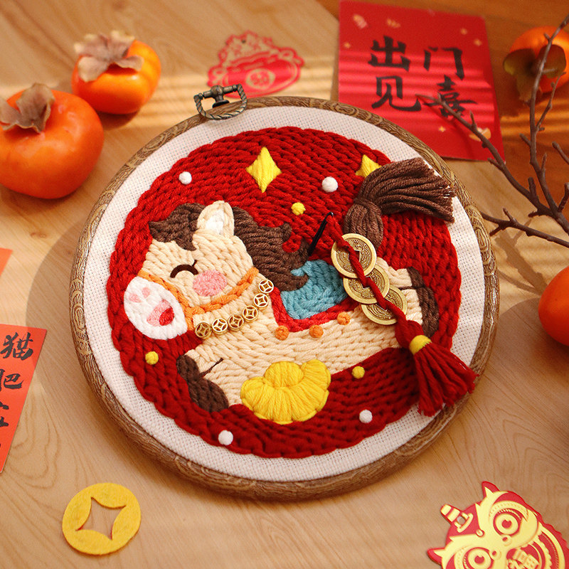 新年喜庆戳戳绣手工diy材料包圆盘家居挂件装饰简单制作送友礼物
