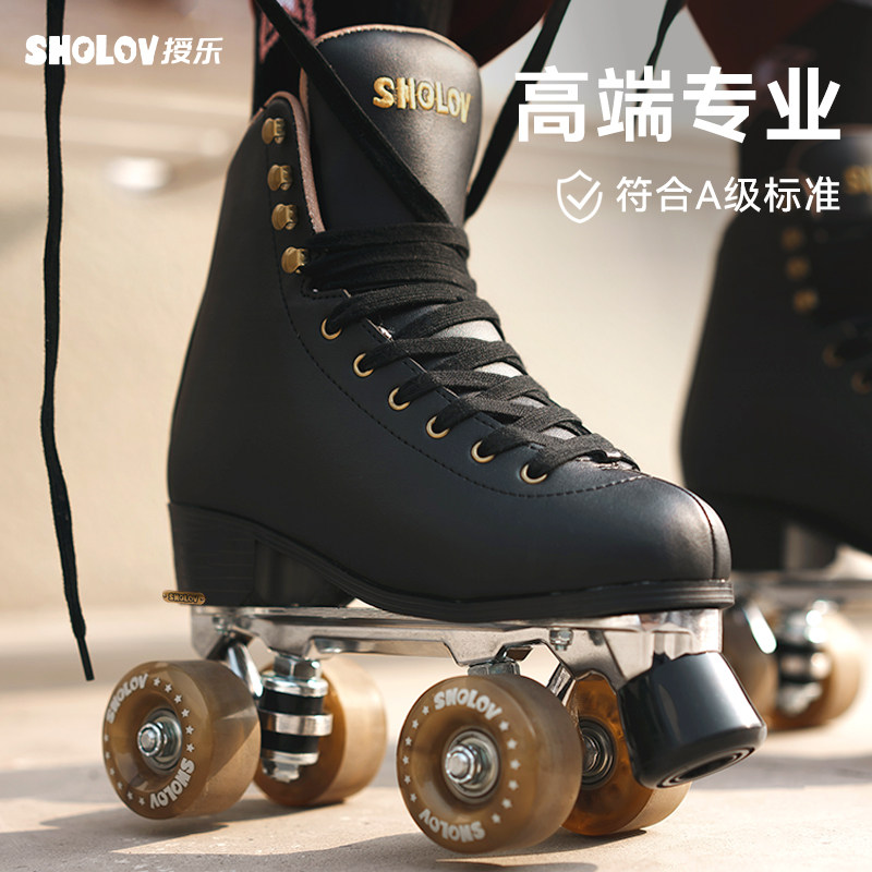 授乐双排溜冰鞋旱冰鞋成人四轮铝合金底座复古时尚初学溜冰场女款