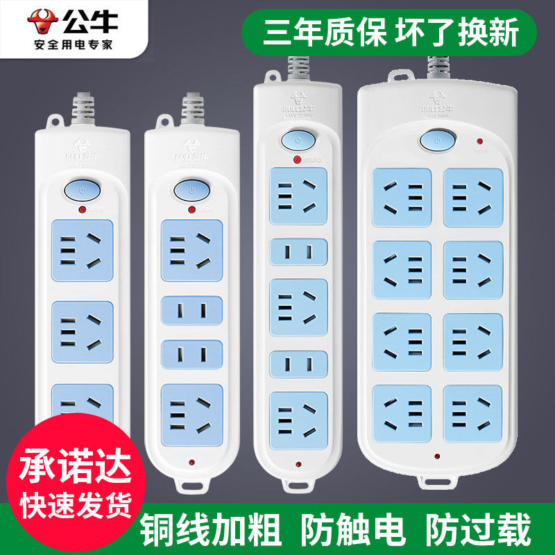 公牛插座插排插板拖接线板正品多孔位家用电源延长线多用功能带线