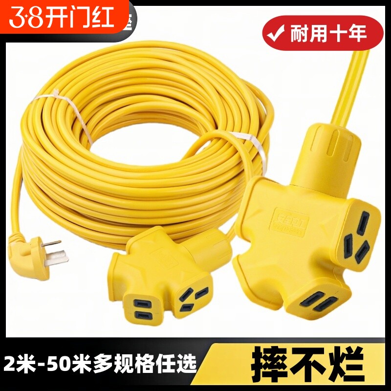 电动车充电插线板家用带线电源插座 2米-50米线地拖插防摔大功率
