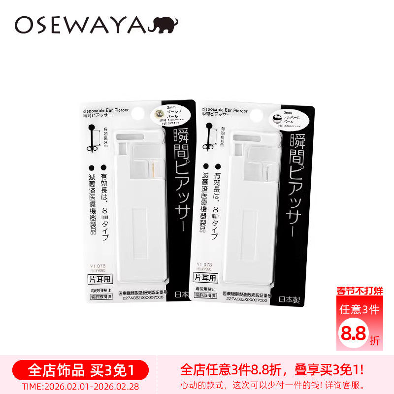 OSEWAYA一次性打耳洞神器专用耳钉自动机穿耳洞镀24K金耳针打孔器