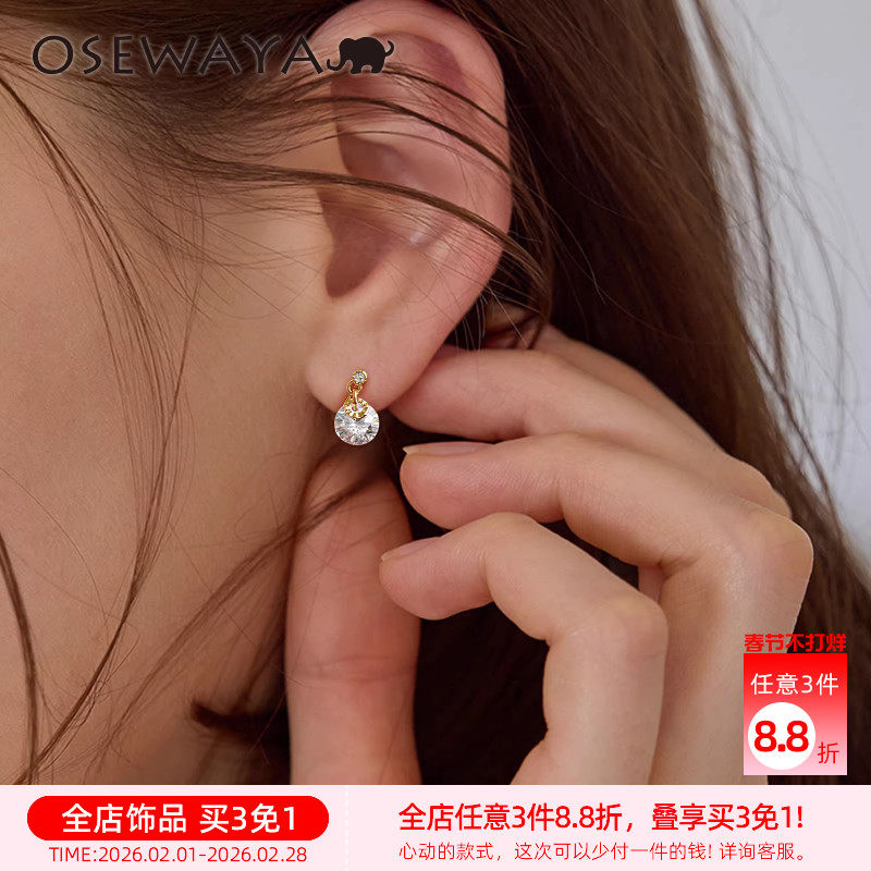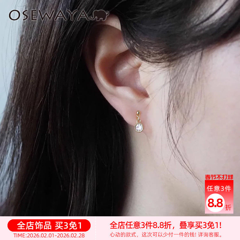 OSEWAYA耳夹无耳洞女小巧淑女气质耳钉锆石日系简约耳环时尚耳饰