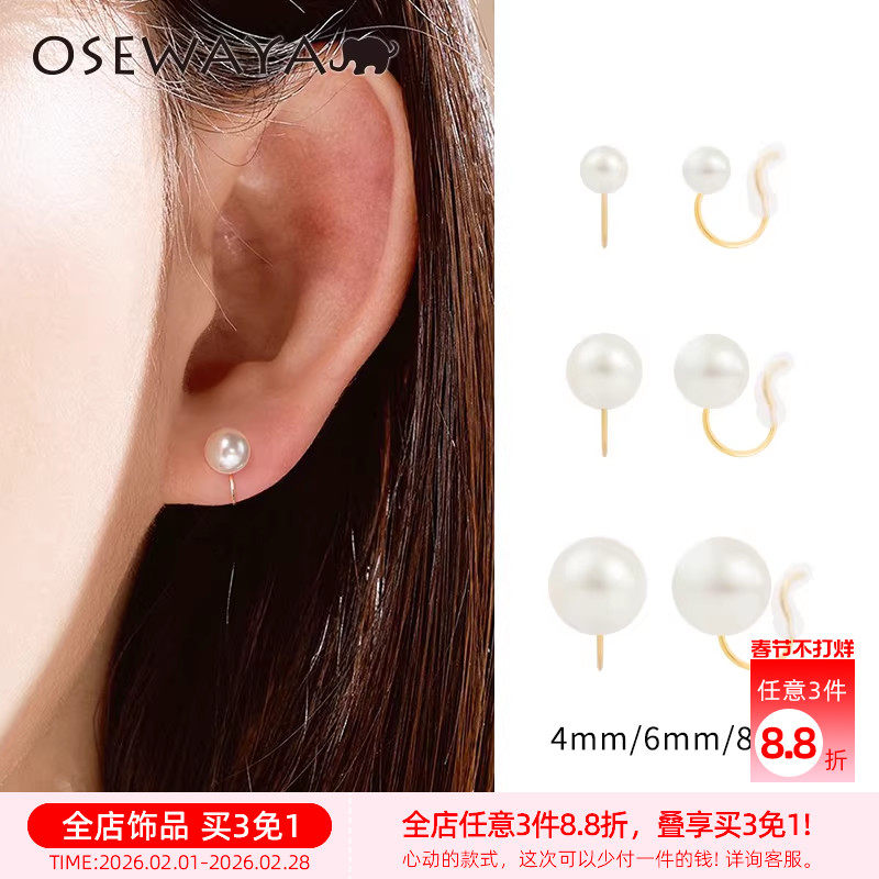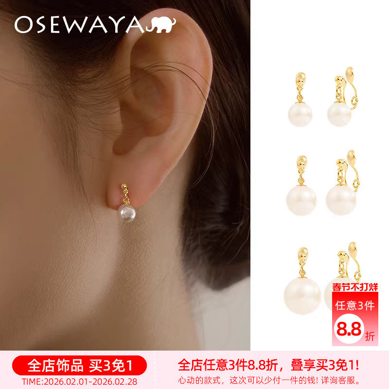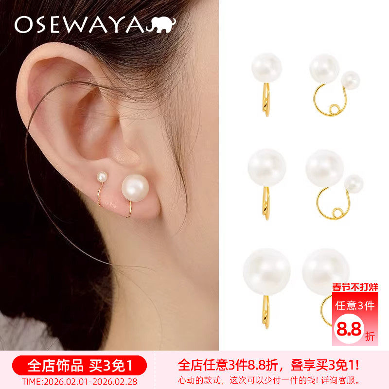OSEWAYA珍珠耳夹女无耳洞耳饰日系超仙森系耳骨夹学生闺蜜礼物