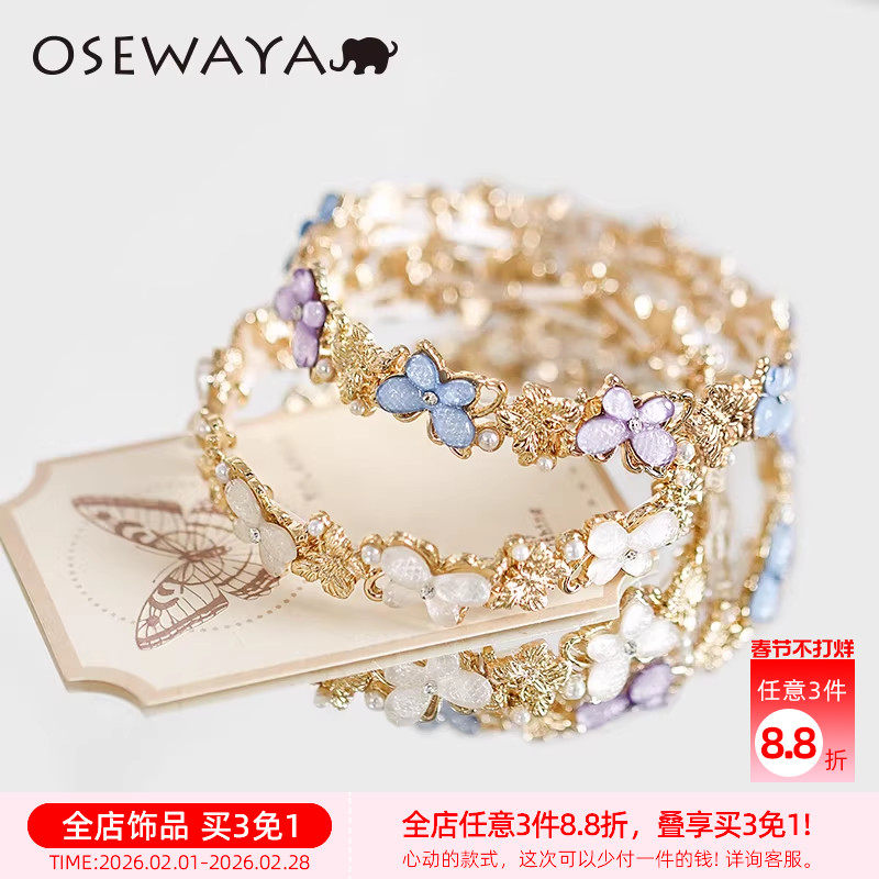 OSEWAYA设计师花朵珍珠手链女ins小众蝴蝶粉花瓣手镯简约轻奢戒指