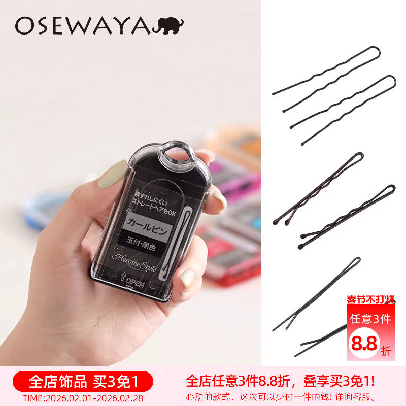 OSEWAYA一字夹盒装便携发卡黑色刘海夹碎发夹隐形固定U型夹后脑勺