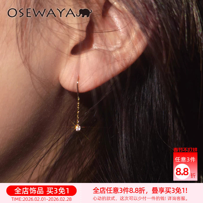OSEWAYA耳夹日系小巧锆石空气感无耳洞耳环女百搭小众简约耳饰品