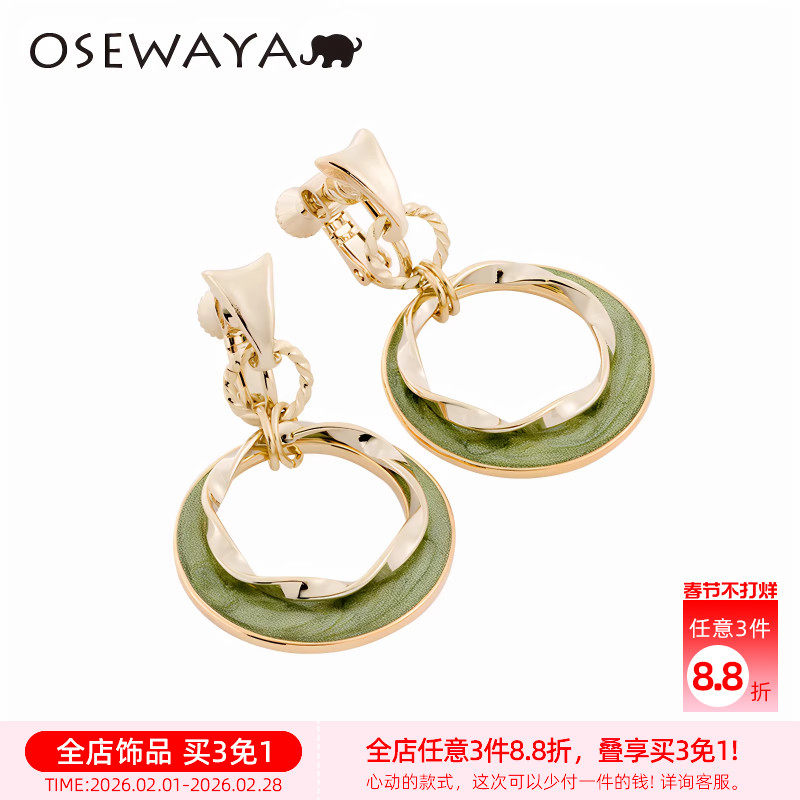 OSEWAYA耳夹无耳洞女复古耳钉圈圈耳环气质绿色耳坠森系圆环耳饰