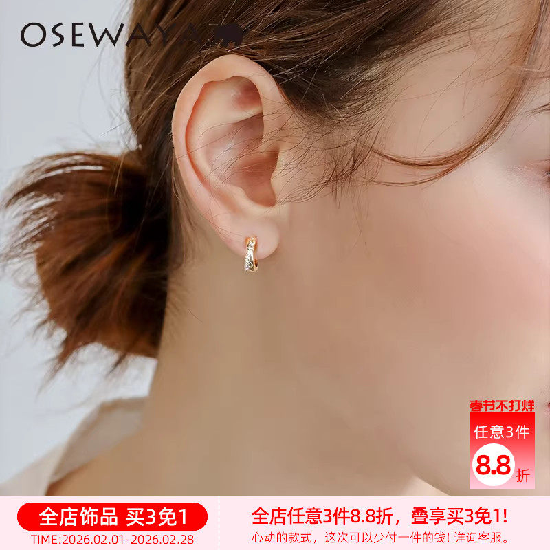 OSEWAYA耳夹无耳洞女小巧耳钉气质日系简约耳环轻奢镶嵌水钻耳饰