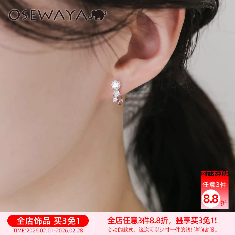 OSEWAYA耳夹日系轻奢镶钻花朵无耳洞耳环女小众设计高级感耳钉ins