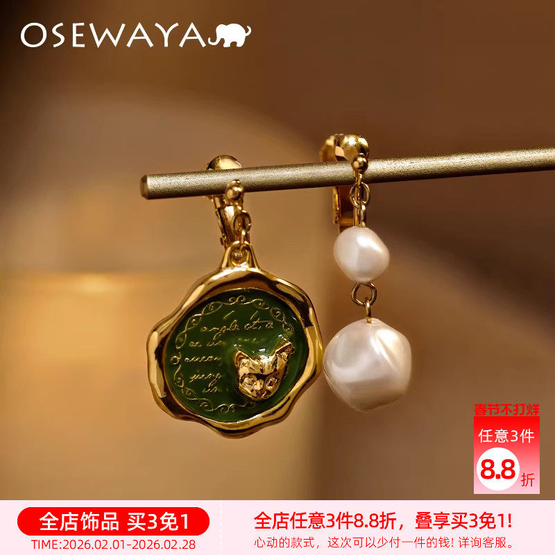 OSEWAYA猫咪珍珠无耳洞耳夹复古小众设计创意耳环女轻奢高级耳钉